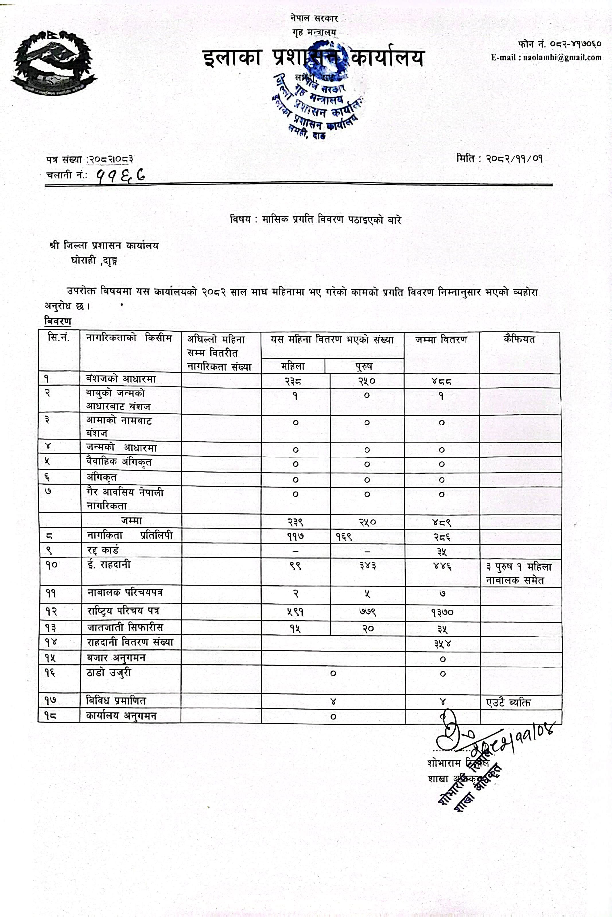 Progress report of 2082 Magh month
