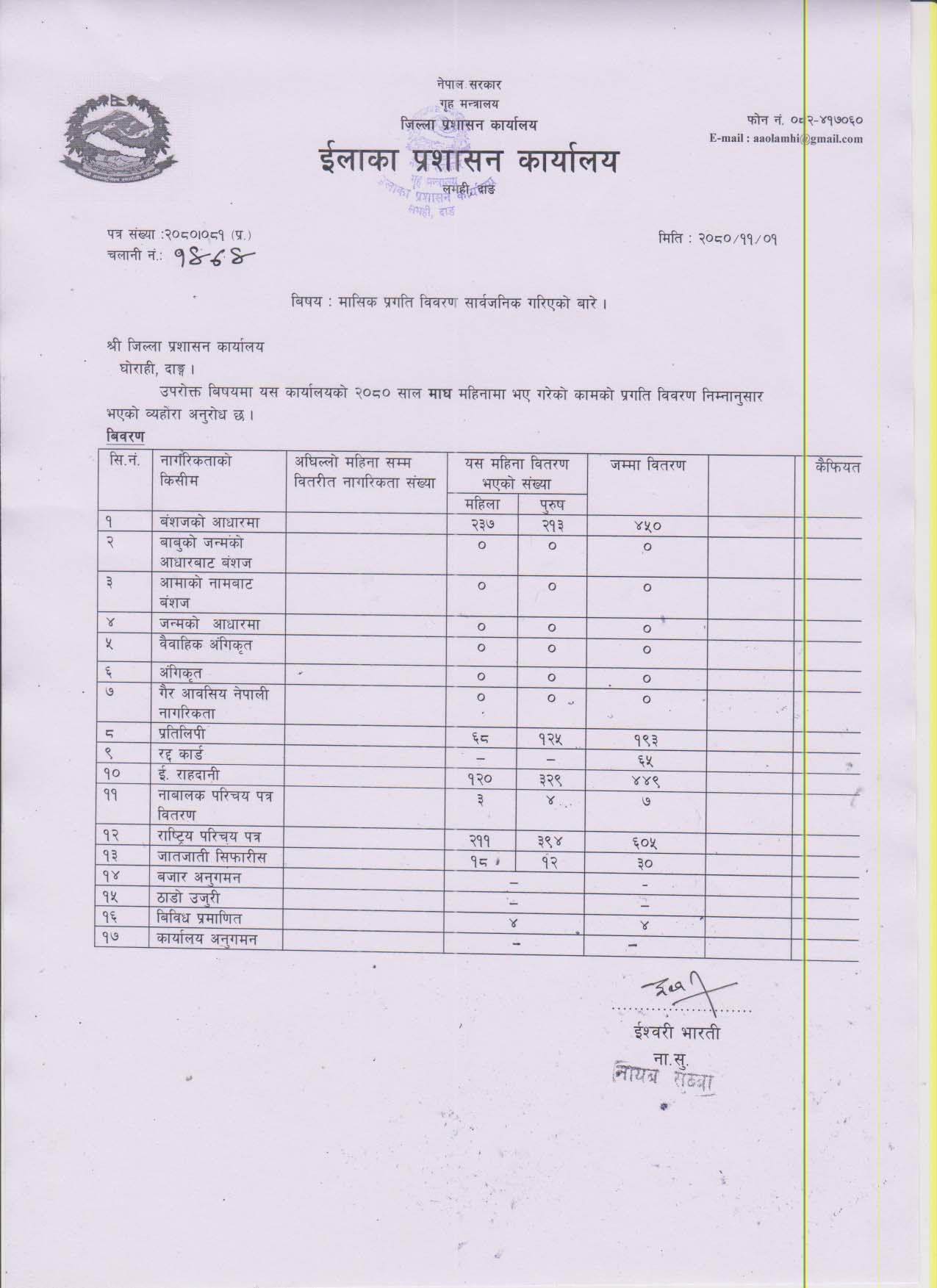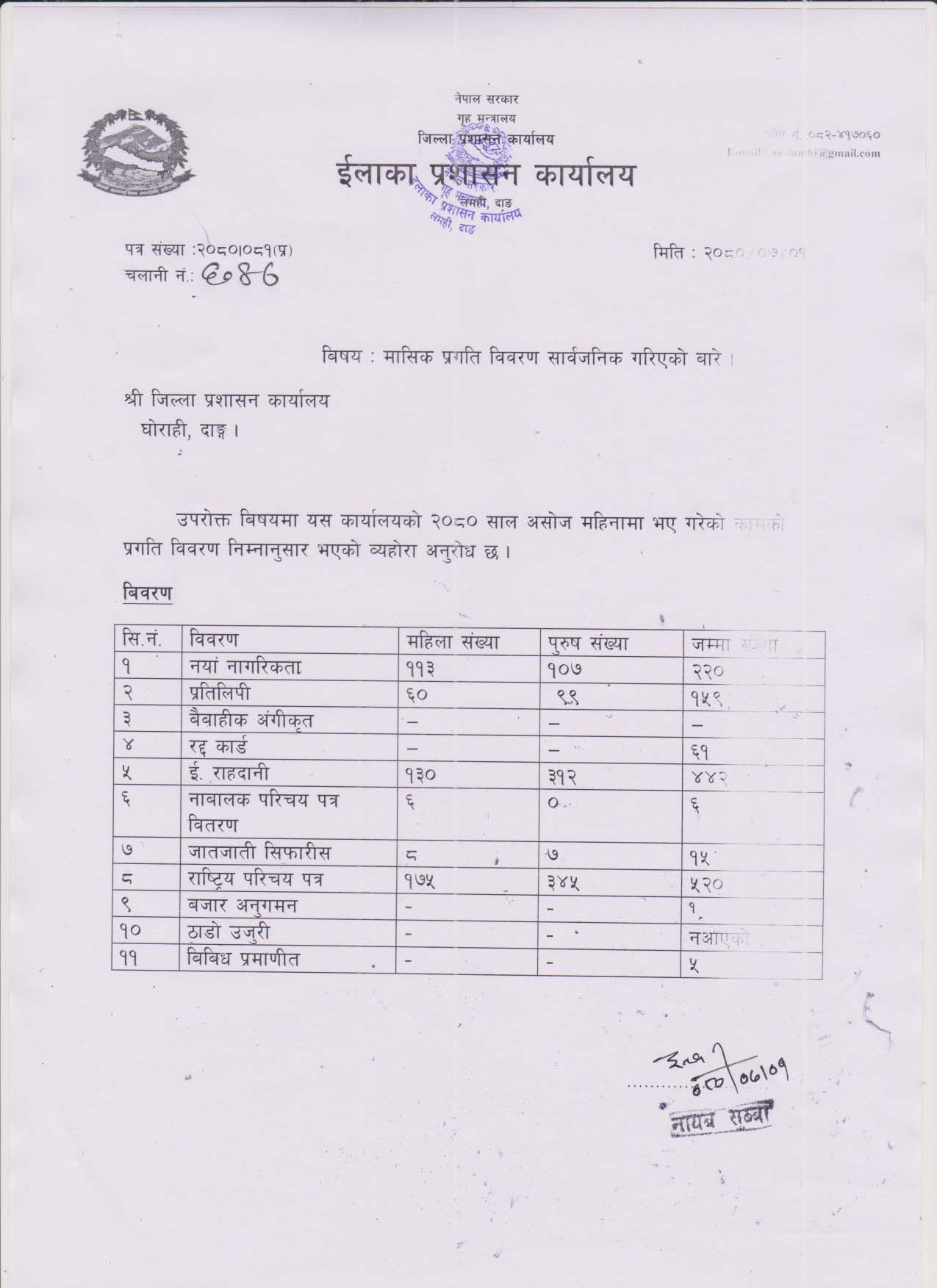 २०८० साल असाेज महिनाकाे मासिक प्रगति विवरण