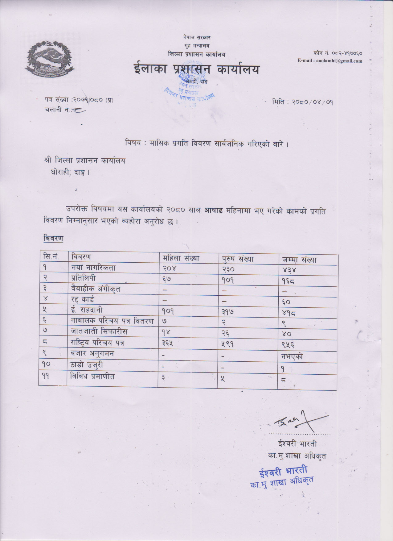 मासिक प्रतिवेदन २०८२ बैशाख महिना