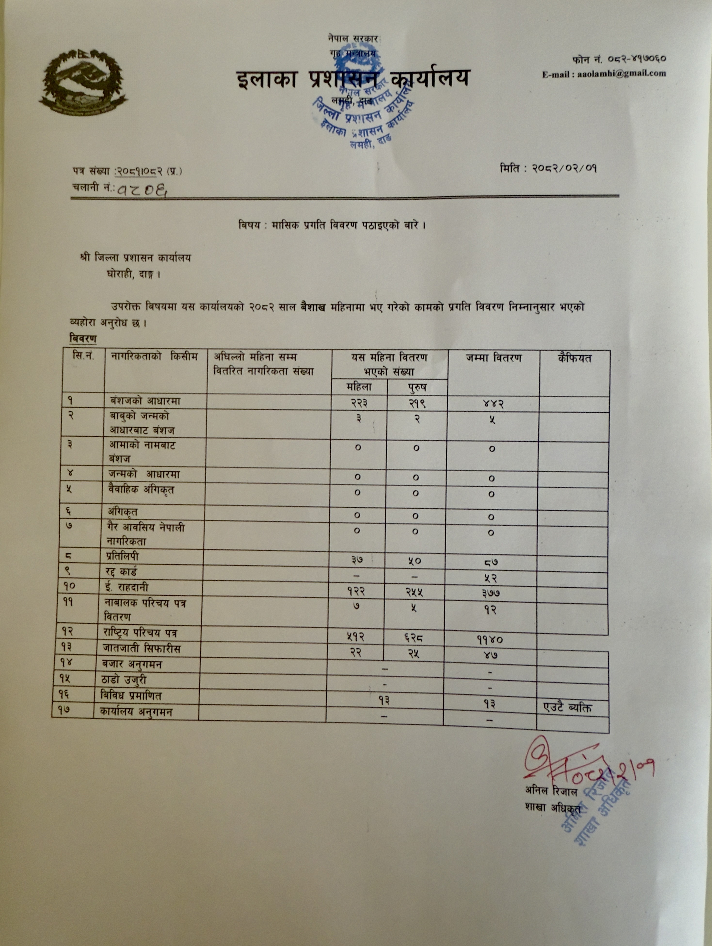 मासिक प्रतिवेदन २०८२ बैशाख महिना