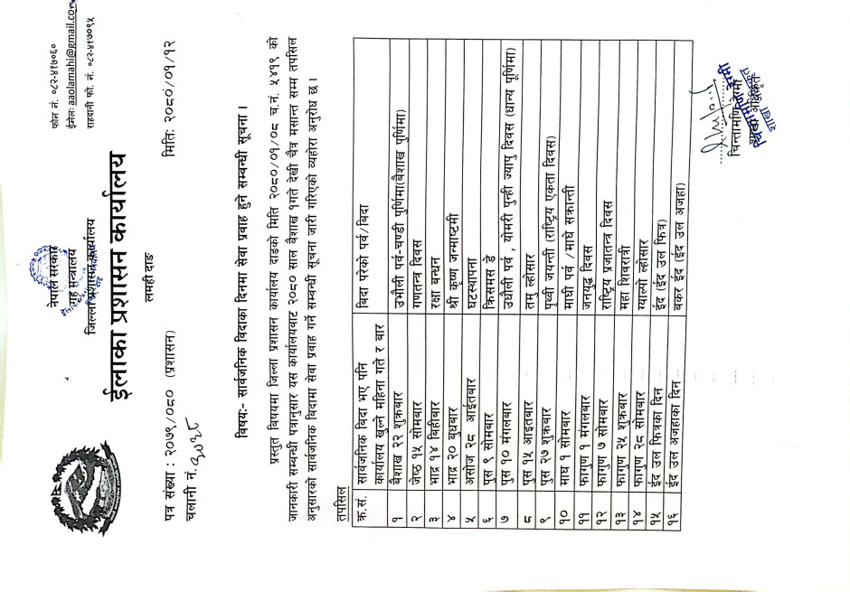 सार्वजनिक विदामा समेत कार्यालय खुल्ने सम्बन्धि सुचना